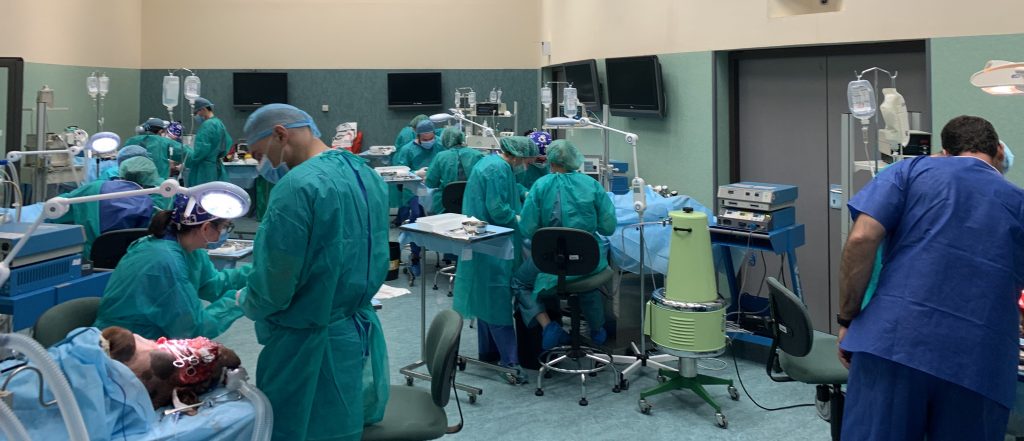 Este año hemos experimentado con cadáveres y con animales ( corderos y cerdos) y además se ha incluido cirugía en directo. Hemos proyectado voz y sonido desde el quirófano hacia el salón de actos, y tanto alumnos como docentes han podido intervenir. Gracias al hospital HLA La Inmaculada por su colaboración.
